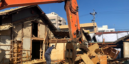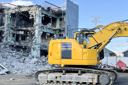 一般住宅から大型物件まで、あらゆる建物の解体工事を行っています。工事にはそれぞれの建物構造に合った重機を使用しています。